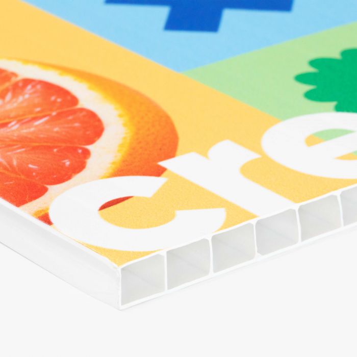 Kanaalplaat is een lichtgewicht en slagvast kunststof paneel met een holle kanaalstructuur, waardoor het sterk én gemakkelijk te verwerken is. Het materiaal is uitstekend geschikt voor buitengebruik en full-color bedrukking, wat het ideaal maakt voor reclameborden, bouwborden en tijdelijke buitencommunicatie. De combinatie van stevigheid, weerbestendigheid en scherpe printresultaten zorgt ervoor dat je boodschap zichtbaar blijft, zelfs bij intensief gebruik buiten.